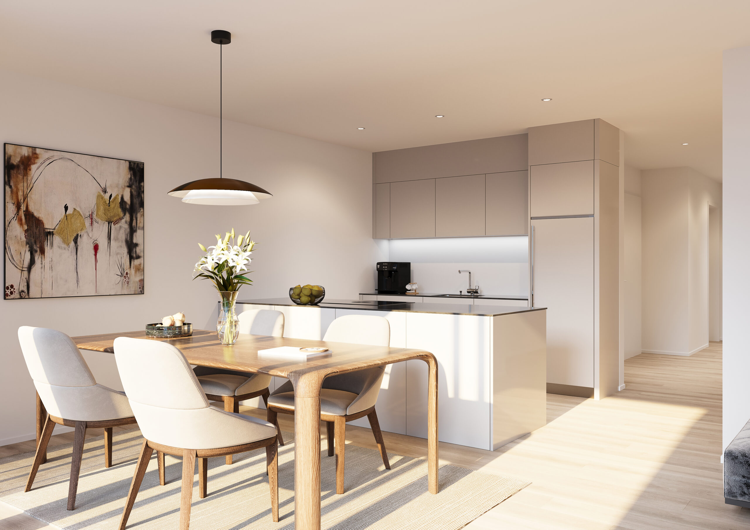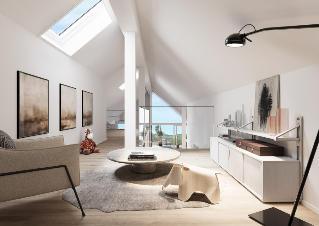Bemerkenswert sind die grossen 4 ½ Zimmerwohnungen unter den Satteldächern mit bis zu 137 m² Wohnraum. Die Attikawohnungen verfügen zusätzlich über Galerien von bis zu 35 m² und Balkone mit bis zu 27 m². Auf den Balkons kann die Anlage überblickt und die Sonne genossen werden.